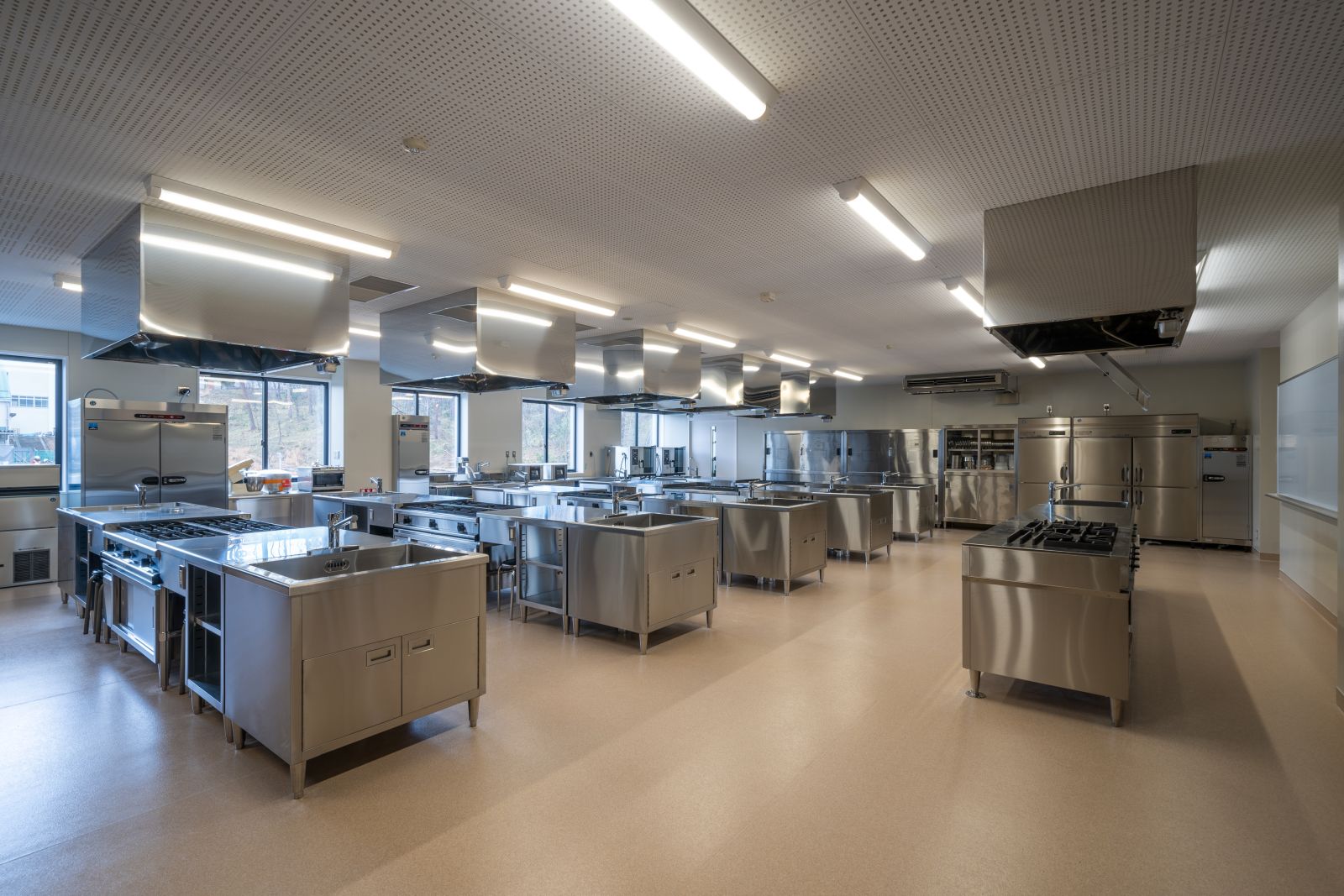 最新鋭の調理設備を配し、和食、中華、製パン製菓を含んだ洋食の調理3分野の学びを実践するエリアです。